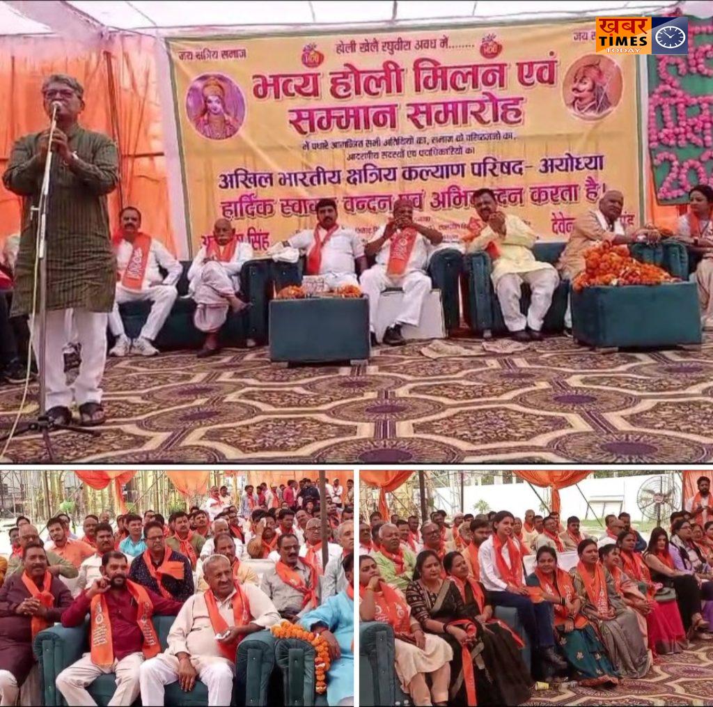 अयोध्या। अखिल भारतीय क्षत्रिय कल्याण परिषद अयोध्या द्वारा होलीमिलन कार्यक्रम RBS होटल जनौरा बाईपास पर सम्पन्न हुआ। मुख्य अतिथि अयोध्या सांसद लल्लू सिंह, नगर विधायक वेद प्रकाश गुप्ता ,गोसाईगंज विधायक अभय सिंह ,अयोध्या महानगर के महापौर महन्थ गिरीश पति त्रिपाठी रहे । कल्याण परिषद के प्रदेश उपाध्यक्ष राजेश कुमार सिंह, जिलाध्यक्ष अम्बरीष सिंह सहित संगठन के पदाधिकारियों ने सभी का भव्य स्वागत किया । इस अवसर पर प्रदेश उपाध्यक्ष राजेश कुमार सिंह ने कहा कि होलीमिलन कार्यक्रम से आपसी सौहार्द बढ़ता है। सांसद श्री लल्लू सिंह ने कहा कि अखिल भारतीय क्षत्रिय कल्याण परिषद द्वारा यह अच्छा कार्यक्रम किया गया है,उन्होंने कहा कि क्षत्रिय सबको साथ लेकर चलता है जरूरतमन्दों की मदद करता है।अयोध्या के विकास पर चर्चा करते हुए कहा कि वर्तमान सरकार के नेतृत्व में पूरे देश का विकास हो रहा है जिसमे अयोध्या को विश्व पटल पर पहुंचाया जा रहा है, जो कई चरणों मे पूर्ण हो रहा है।नगर विधायक वेद गुप्ता ने कल्याण परिषद के आयोजकों को बधाई देते हुये कहा कि अयोध्या विश्व स्तरीय नगर बनेगा । उन्होंने जनपद में गोरक्षपीठाधीश्वर पूज्य महन्थ अवैद्यनाथ जी की प्रतिमा स्थापित करने की बात कही । गोसाईगंज विधायक अभय सिंह ने कहा कि भगवान राम हमारे आराध्य है और इस बार की होली सबसे महत्वपूर्ण है क्योंकि 498 वर्ष बाद प्रभु श्रीराम जी अपने जन्मभूमि में पुनःप्रतिष्ठित हुए हैं । महापौर महन्थ गिरीश पति त्रिपाठी जी ने कहा कि अयोध्या भगवान श्रीराम की नगरी हैं और प्रभु श्रीराम जी इस बार अपनी जन्मभूमि में प्रतिष्ठित हुये हैं इस अवसर पर अखिल भारतीय क्षत्रिय कल्याण परिषद द्वारा सर्वसमाज का होली मिलन आयोजन अति महत्वपूर्ण हो जाता है । जिलाध्यक्ष अम्बरीष सिंह ने सभी का आभार प्रकट करते हुये कहा कि इस कार्यक्रम का आयोजन आपसी भाईचारा बढाने और आपस मे सौहार्द बढाने के उद्देश से किया जाता है। प्रदेश सचिव सूर्यभान सिंह ने सभी का आभार प्रकट किया । कार्यक्रम की अध्यक्षता प्रदेश उपाध्यक्ष राजेश कुमार सिंह एवं जिलाध्यक्ष अम्बरीष सिंह ने किया तथा मंच संचालन डॉ राजेश कुमार सिंह ने किया । संगीतकारों की मंडली ने भजन और होली गीत गाकर समा बांध दिया । कार्यक्रम में अनूप सिंह डेरामुसी का राजेश कुमार सिंह, अम्बरीष सिंह सहित अन्यलोगों ने किया। स्वागत किया गया । इस अवसर पर कल्याण परिषद द्वारा 5 PCS चयनित अभ्यर्थियों और दिशा कोचिंग संस्थान के निदेशक अखिल कुमार सिंह को भी सम्मानित किया गया ।
