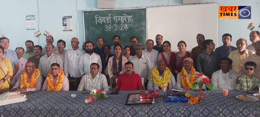 अयोध्या । राजकीय इण्टर कॉलेज अयोध्या के प्रधानाचार्य डॉ एस एन तिवारी, प्रवक्ता वेद प्रकाश मिश्र, वरिष्ठ शिक्षक भृगुनाथ पाण्डेय, जंग बहादुर वर्मा और राम कृपाल सिंह आज 31मार्च को लगभग तीन दशक से अधिक की राजकीय सेवा के पश्चात् सेवा निवृत्त हो गये। जीआईसी अयोध्या के विवेकानंद हाल में अयोध्या के जिला विद्यालय निरीक्षक डॉ राजेश कुमार आर्य की गरिमामयी उपस्थिति में विद्यालय परिवार ने राजकीय सेवा से अवकाश पाने वाले प्रधानाचार्य एवं शिक्षकों को सम्मान विदाई दी। जिला विद्यालय निरीक्षक डॉ आर्या ने उन सभी को माला पहनाया व अंगवस्त्र प्रदान किया जबकि प्रभारी प्रधानाचार्य राम निहोर एवं उप प्रधानाचार्य राजेश तिवारी और अनेक शिक्षकों ने स्मृति चिह्न भेंट किया तथा हिन्दी की प्रवक्ता डॉ दुर्गावती ने पूरे स्टाफ की भावनाओं को लिखकर तैयार की गई डायरी भेंट किया। सेवानिवृत्त शिक्षकों और प्रधानाचार्य ने अपने लम्बे सेवा काल के अनुभव को सबसे साझा किया और निस्वार्थ भाव से अपनी ड्यूटी करने की सीख दी जबकि जिविनि ने उनके भावी जीवन के लिए शुभकामनाएं देते हुए युवा शिक्षक, शिक्षिकाओं को उनसे प्रेरणा लेने की बात कही । इस अवसर पर डॉ उदयभान मिश्र, प्रदीप श्रीवास्तव, रवीन्द्र कुमार, आनन्द पाठक, एसपी पाल, डॉ उदयभान सिंह, बसंत कुमार, कपिल देव, वरुण त्रिपाठी, के पी सिंह, अखिलेश श्रीवास्तव, के पी वर्मा, अर्चना यादव, अभिषेक सिंह, सुषमा गुप्ता, सविता, नाज़मा बानो, ममता वर्मा, रमेश कुमार सिंह, मेवालाल, मोगीस अहमद,आलोक मिश्र, उमाकांत मिश्र,मो०शरीफ अंसारी, शाजिया ,अजय कुमार,तेज प्रकाश शुक्ल आदि मुख्य रूप से उपस्थित रहे।